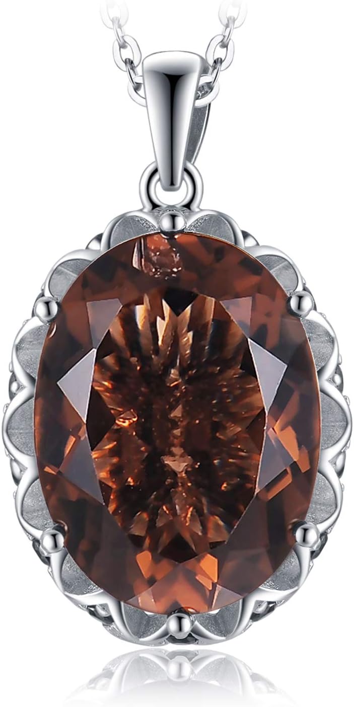 JewelryPalace Huge 8.5ct Oval Shape Natural Smoky Quartz Pendant Necklace for Women, 925 Sterling Silver Necklace for Her, Genuine Gemstone Jewelry sets 18 Inches Chain